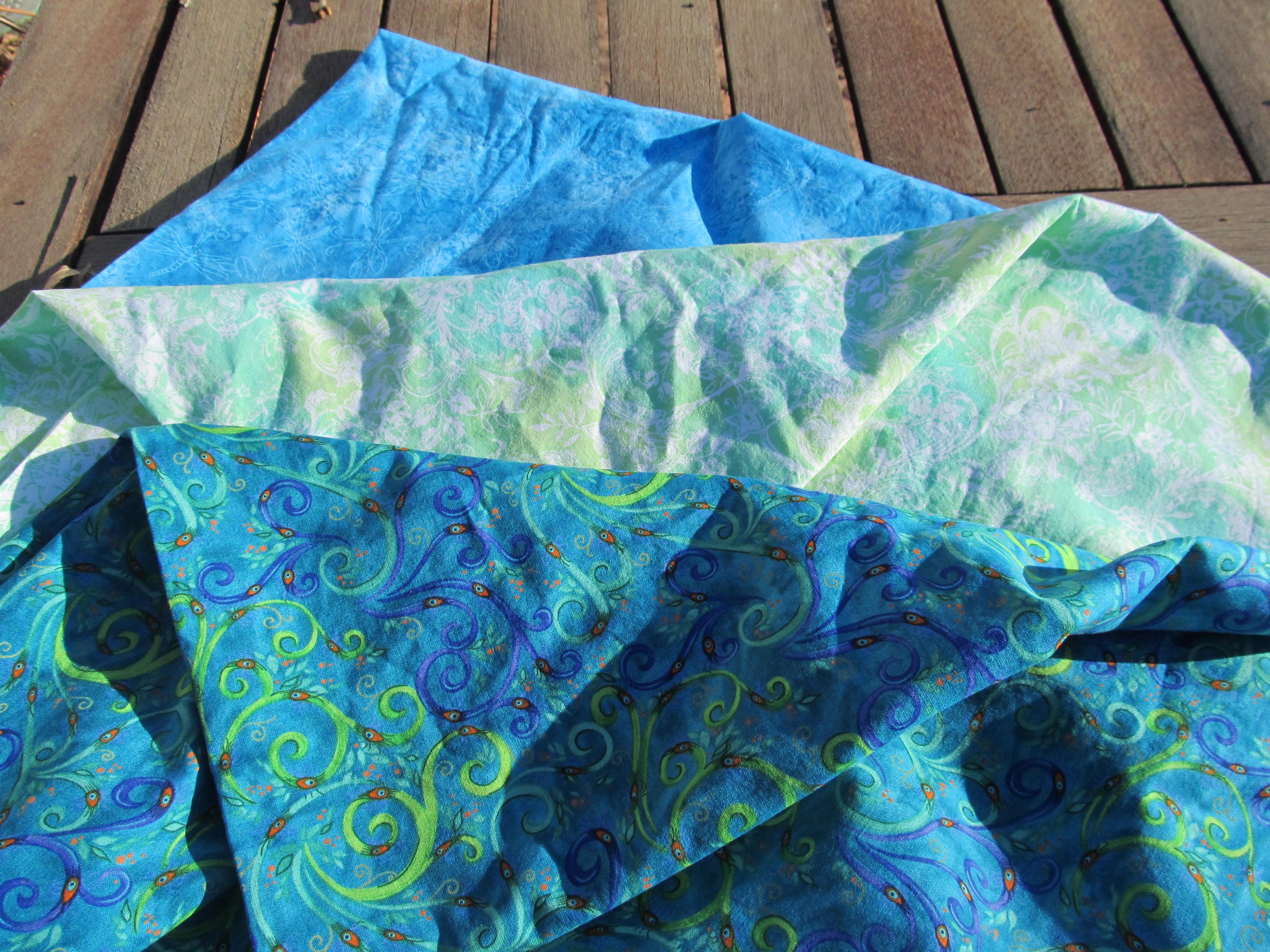 We hit the fabric store and Kate found three fabrics she really liked in blues and greens.